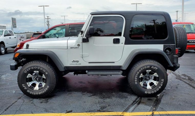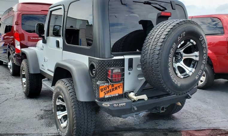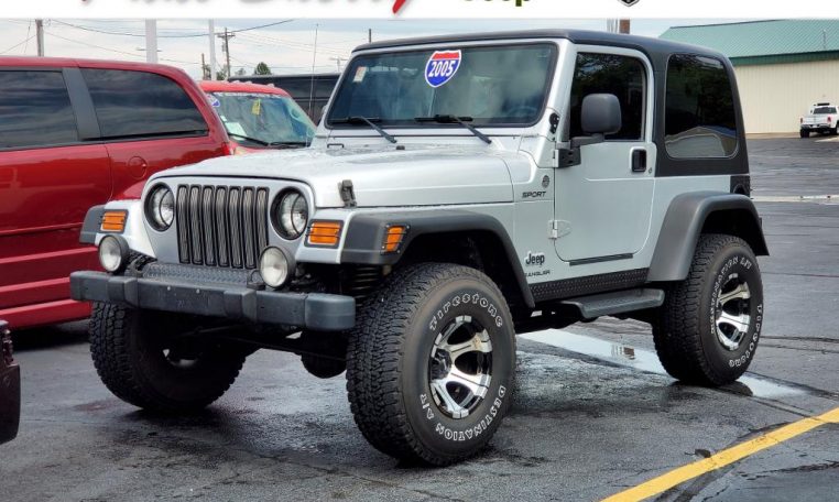 4.0L I6 Engine! 4X4 – Premium Cloth Seats – Manual-Crank Windows – Black Hard Top – Running Boards – 33-Inch Firestone Tires – 15-Inch Dick Cepek Alloy wheels – Aftermarket XRC Bumper/Swing-Out Tire Carrier – Diamond Plate Sill Guards – Diamond Plate Corner Guards – Tinted Windows – Aftermarket Speakers – CD Player – Leather-Wrapped Steering Wheel – Towing Receiver – Grille Inserts – Black Headlamp Bezels – Fog Lamps – Front/Rear Light Protectors – Off Road Skid Plates – Clean AutoCheck History Report – AND MORE! Visit WWW.SHERRYCHRYSLER.COM to see more pictures and a detailed HD video of this custom Bright Silver Metallic 2005 Jeep TJ Wrangler Sport 4WD Convertible SUV for sale in Piqua, Ohio. Do you know that we offer competitive financing options and can assist with delivery? These are only some of the ways Paul Sherry goes above and beyond! *See Dealer To Confirm Specific Equipment*