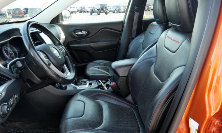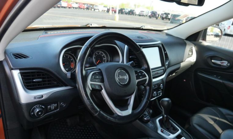 TRAILHAWK! 1 Owner! 3.2L V6 Engine! GPS Navigation! 4X4 – Sunroof – Remote Start – Heated/Cooled Premium Leather Seats – Heated Leather-Wrapped Steering Wheel – Push-Button Ignition – Power Liftgate – Locking Rear Differential – Black Hood Decal – Off Road Skid Plates – Rear Parking Camera – 8.4-Inch Touchscreen Radio Display – Auxiliary Stereo Input – Satellite Radio – Bluetooth For Phone – Automatic Dual-Zone Climate Control – 115V AC Power Outlet – USB Charge Ports – Universal Garage Door Opener – 17-Inch Alloy Wheels – Class III Towing Receiver – Automatic Headlamps w/ Black Bezels – Fog Lamps – Roof Rack Rails – Clean AutoCheck History Report – AND MORE! Visit WWW.SHERRYCHRYSLER.COM to see more pictures and a detailed HD video of this Mango Tango Pearlcoat 2015 Jeep Cherokee Trailhawk 4WD SUV for sale in Piqua, Ohio. Do you know that we offer competitive financing options and can assist with delivery? These are only some of the ways Paul Sherry goes above and beyond! *See Dealer To Confirm Specific Equipment*