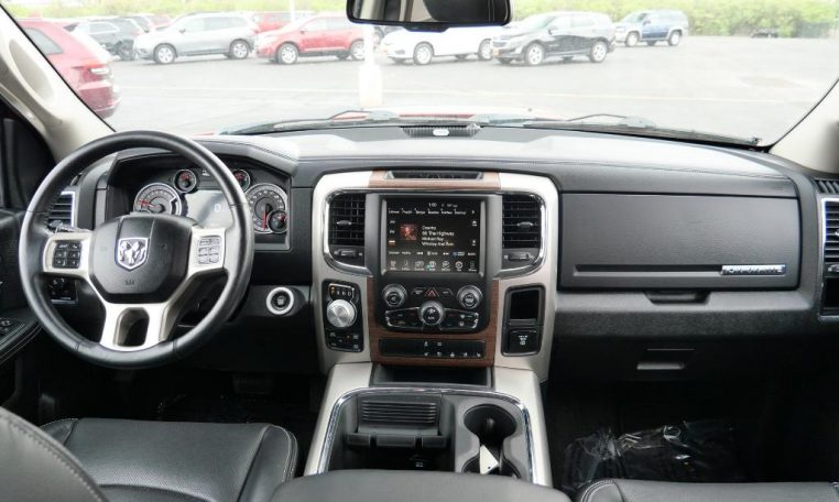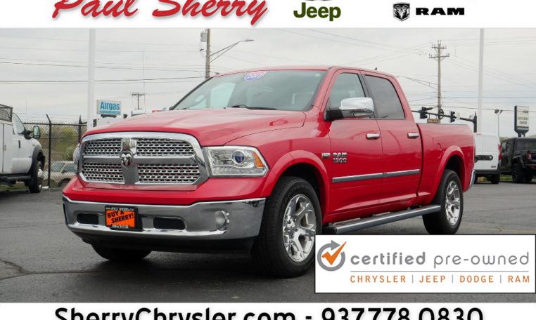Certified Pre-Owned! 1 Owner! GPS Navigation! 4X4 – 3.21 Axle Gears – 8,084 lb. Tow Rating – Remote Start – Power/Heated/Cooled Leather Seats – Heated 2nd Row Perimeter Seats – Heated Leather-Wrapped Steering Wheel – Power/Heated Mirrors – Chrome Tube Running Boards – Factory Spray-In Bed Liner – Locking Tailgate – Rear Power Sliding Window – Push-Button Ignition – Rain-Sensing Wipers – Rear Parking Camera – 8.4-Inch Touchscreen Display – Premium 9-Speaker Alpine Stereo System – Auxiliary Stereo Input – Satellite Radio – Bluetooth For Phone – 115V AC Power Outlet – Automatic Dual-Zone Climate Control – Universal Garage Door Opener – 2nd Row In Floor Storage Bins – 20-Inch Chrome Wheels – Class IV Towing Receiver – Automatic Headlamps – Auto High Beam Headlamp Control – Fog Lamps – Clean AutoCheck History Report – AND MORE! Visit WWW.SHERRYCHRYSLER.COM to see more pictures and a detailed HD video of this Ram 1500 Laramie 4WD Crew Cab. Did you know that we deliver? These are only some of the ways Paul Sherry goes above and beyond! *See Dealer For Specific Equipment*