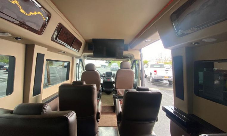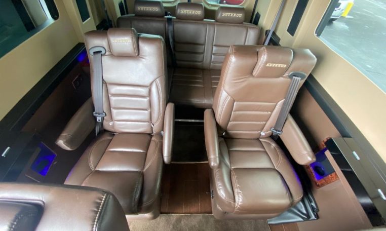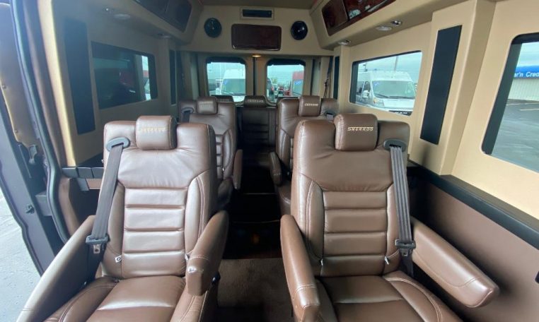 — Sherrod Vans 9 Passenger Conversion! Stand Up Inside – Premium Leather Seating – Vinyl Wood Grain Flooring – Swivel 2nd/3rd Row Captain Chairs w/ Power Recline – Child Seat Anchors in Captain Chairs – 2-Section Power Sofa/Bed – 32-Inch Smart HDTV – Smart Blu-Ray/DVD Player – Premium Speakers Throughout – Rear Alpine Radio – Phoenix Gold Amplifier/Subwoofer – Xbox Video Game Console – Rear 110V AC Power Outlet – Rear USB Charge Ports – Remote HDMI Input For TV – Automatic Rear Climate Control w/ Adjustable Vents – Premium Deep Pile Carpeting w/ Floor Mats – Sound/Heat Insulation – Rear Privacy Window Shades – Indirect LED Accent Lighting – LED Reading Lights – Painted Exterior Fascias/Trim – Painted Running Boards w/ Non-Slip Pads – AND MORE!