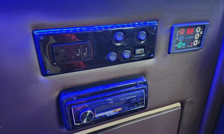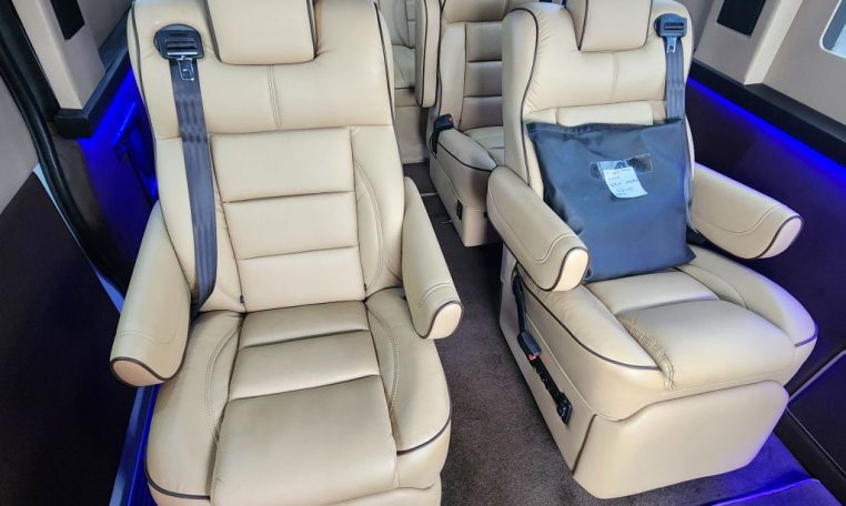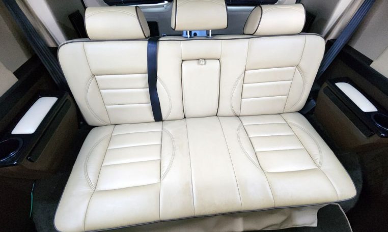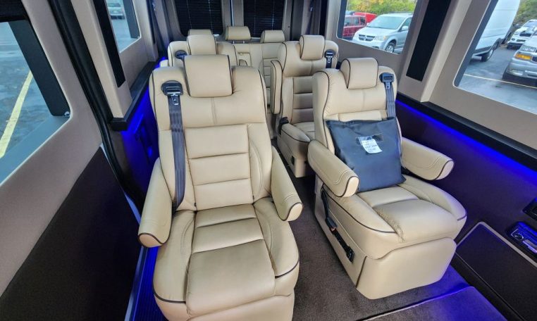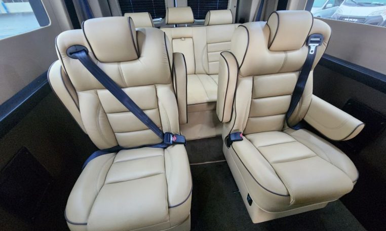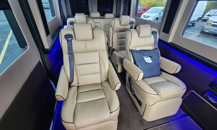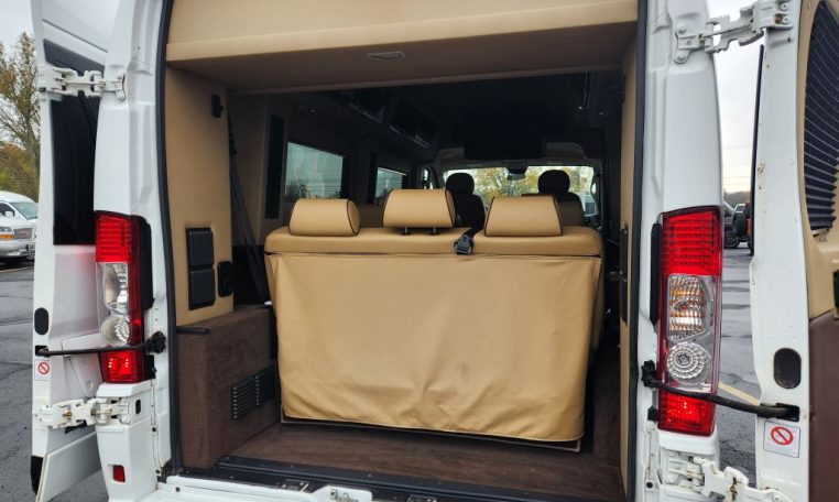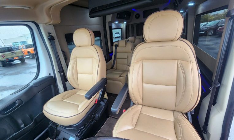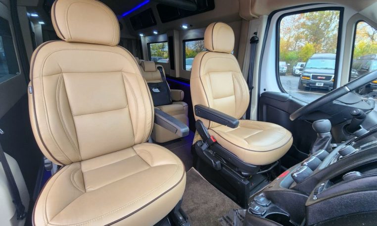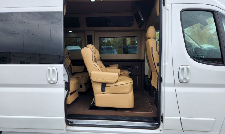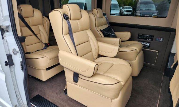 — Sherry Vans 9 Passenger Conversion! Stand Up Inside! — 76-Inch Interior Height! Premium Leather Seating – 2nd Row Captain Chairs w/ Power Foot Rests/Recline – 3rd Row Captain Chairs w/ Power Recline- 2-Section Power Sofa/Bed – 32-Inch Smart HDTV – Premium Speakers Throughout – Rear 110V AC Power Outlet – Rear USB Charge Ports – Remote HDMI Input For TV – Automatic Rear Climate Control w/ Adjustable Vents – Rear Radio w/ Bluetooth – Sound/Heat Insulation – Rear Privacy Window Shades – Indirect LED Accent Lighting – Reading Lights – Painted Exterior Fascias/Trim – Painted Running Boards w/ Non-Slip Pads – 18-Inch Painted Aftermarket Alloy Wheels – AND MORE!