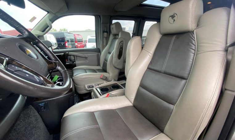 RARE FOUR WHEEL DRIVE 7 Passenger Explorer Vans Conversion Van! GPS Navigation! Remote Start – High-Top Raised Roof w/ Glass Vista Side Windows – Wrap-Around Ground Effects w/ Hidden Power Running Boards – Premium Two-Tone Leather Seating – Power/Heated Front Captain Chairs – Swivel/Quick-Release 2nd Row Captain Chairs – Power 3-Section Sofa/Bed – 29-Inch HDTV – Blu-Ray/DVD Player – Remote HDMI Input – Front/Rear 120V AC Power Outlets – USB Charge Ports – Power/Heated Mirrors – Blind Spot Monitoring – Forward Collision Warning – Lane Departure Warning – Rear Parking Camera/Sensors – Touchscreen Radio Display – Auxiliary Stereo Input – Satellite Radio – Bluetooth For Phone – CD Player – Front/Rear Climate Control – Rear Accent Lighting – Rear Window Shades – Center Console Cooler – Leather-Wrapped Steering Wheel – 20-Inch Premium Painted Alloy Wheels – Towing Receiver – Chrome Grille Insert – Automatic Headlamps – LED Driving Lights – Clean AutoCheck History Report – AND MORE! Visit WWW.SHERRYVANS.COM to see more pictures and a detailed HD video of this custom 2019 Chevrolet Express for sale in Piqua, Ohio. Do you know that we offer competitive financing options and can assist with delivery? These are only some of the ways Paul Sherry goes above and beyond! *See Dealer To Confirm Specific Equipment*