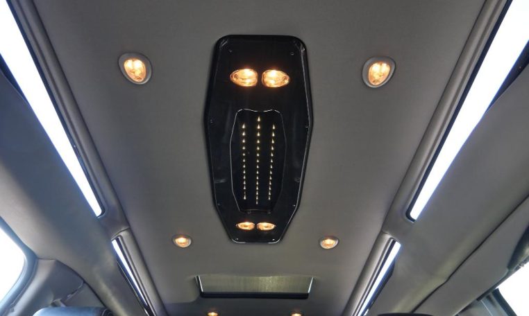 - Lighting; interior with 4 dome lights 1 overhead and 3 LED''s on cross members in cargo area; includes defeat switch and door handle-activated switches