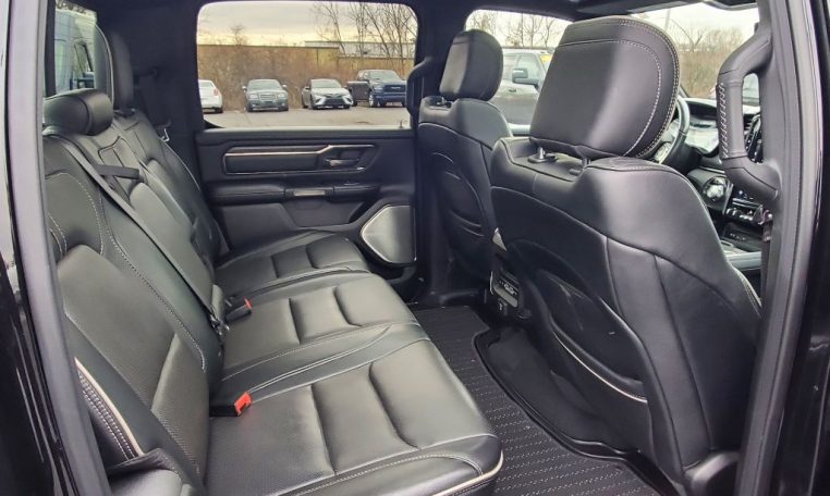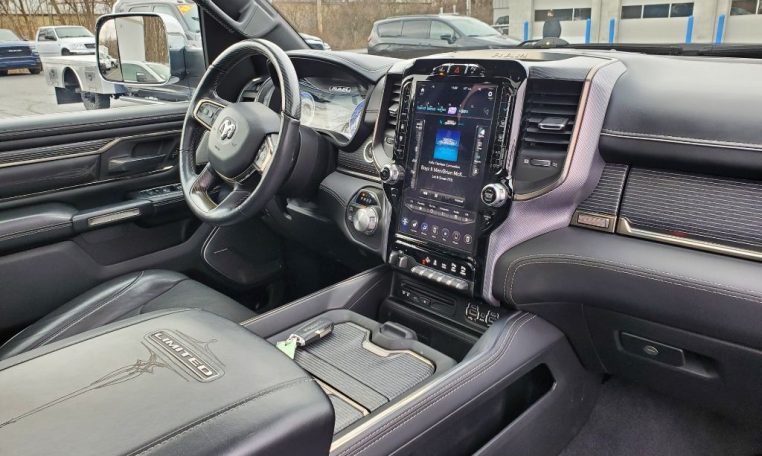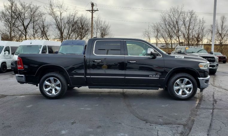 4 Corner Air Suspension! GPS Navigation! 4X4 – 3.92 Axle Gears – Dual-Pane Panoramic Sunroof – Remote Start – Power/Heated/Cooled Leather Seats – Heated Wood/Leather-Wrapped Steering Wheel – Heated 2nd Row Perimeter Seats – Power-Adjustable Pedals – Push-Button Ignition – Power Running Boards – Factory Spray-In Bed Liner – LED Bed Lighting – Dampened/Locking Tailgate – Power/Heated Trailer Tow Mirrors – Optional 33 Gallon Fuel Tank – Rear Power-Sliding Window – Lane Keep Assist – Forward Collision Warning – Blind Spot Monitoring – Rain-Sensing Wipers – Parallel Park/Unpark Assist – Front/Rear Parking Sensors – Rear Parking Camera – 12-Inch Touchscreen Radio Display – Premium 19-Speaker Harman/Kardon Stereo System – Android Auto – Apple CarPlay – Auxiliary Stereo Input – Satellite Radio – Bluetooth For Phone – CD Player – Automatic Dual-Zone Climate Control – Wireless Charging Pad – Front/Rear 115V AC Power Outlets – USB Charge Ports – Universal Garage Door Opener – 2nd Row In-Floor Storage Bins – 20-Inch Polished Alloy Wheels – Tire Fill Alert – Class IV Towing Receiver – Factory Trailer Brake Controller – Automatic LED Projector Headlamps w/ Chrome Bezels – Automatic High-Beam Headlamp Control – LED Fog Lamps – AND MORE! Visit WWW.SHERRYCHRYSLER.COM to see more pictures and a detailed HD video of this Diamond Black Crystal Pearlcoat 2019 Ram 1500 Limited 4WD Crew Cab Pickup Truck for sale in Piqua, Ohio. Do you know that we offer competitive financing options and can assist with delivery? These are only some of the ways Paul Sherry goes above and beyond! *See Dealer To Confirm Specific Equipment*