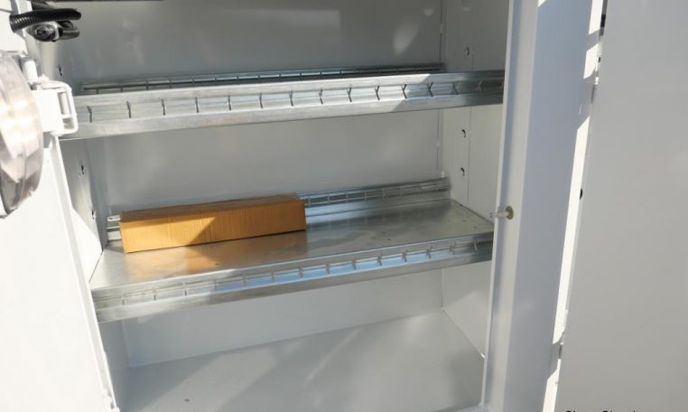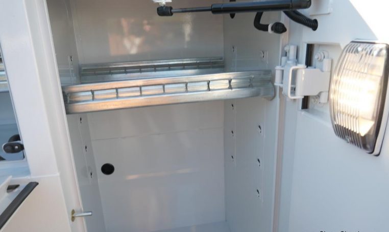 — Reading Classic II 132ADW Dual Wheel Service Body – Stainless Steel Rotary Paddle Latches – Heavy Duty Bolts on Adjustable Hidden Hinges – Light Guards – Recessed LED Lights – White Powdercoat Finish – Shelving – Dividers – Gas Strut Door Holders – Slam Action Tailgate – Pooched Rear Bumper – LatchMatic Keyless Locking System – LED Compartment Lighting – AND MORE!