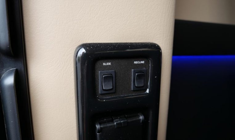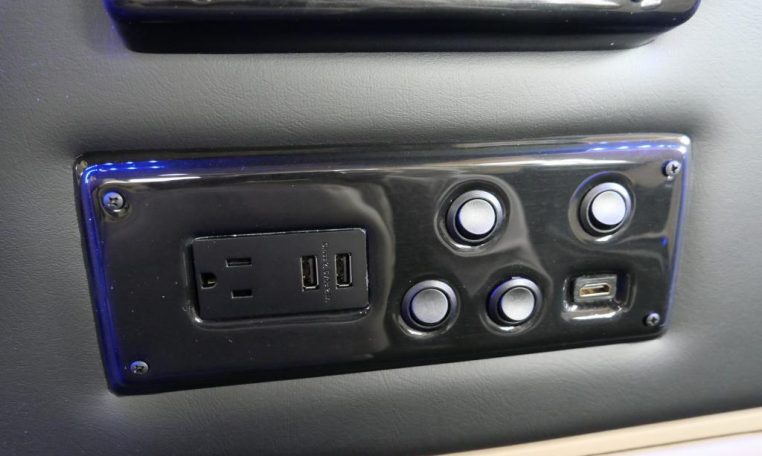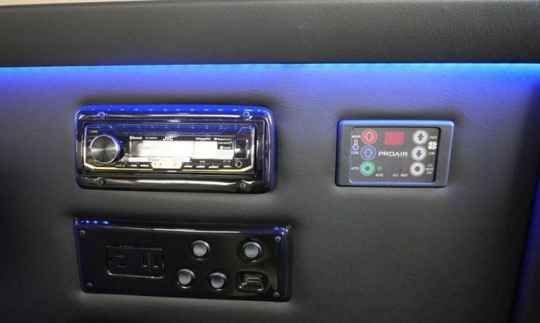 Rear Entertainment: 32″ Vizio HDTV, Panasonic Blu-ray/DVD Player, JVC Stereo, Wireless Headphones w/ Storage Cases, AC Power Outlet, Remote HDMI Input, LED Indirect Accent and Mood Lighting, LED Reading Lights