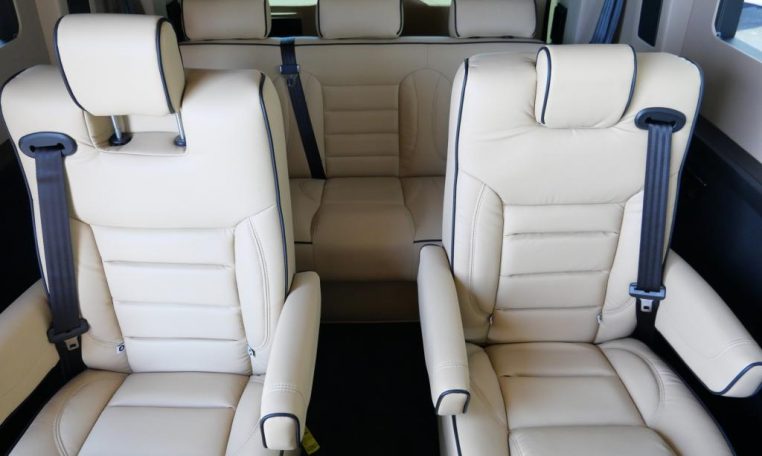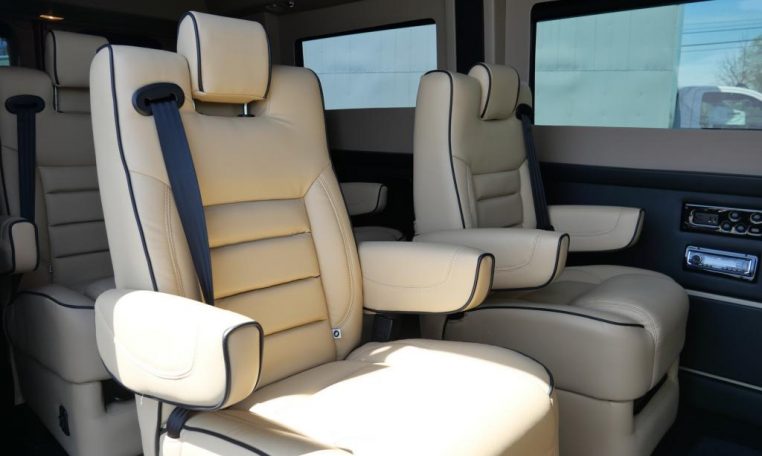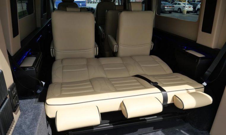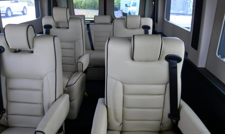 Interior: Tan Decor, Premium Leather Seating For 9 Passengers, Custom Pleated Privacy Day/Night Window Shades, Dynamat Sound Deadening, Premium Carpet, Glossy Interior Trim, LED Lighting, LED Lit Cupholders, Leather-Wrapped Steering Wheel