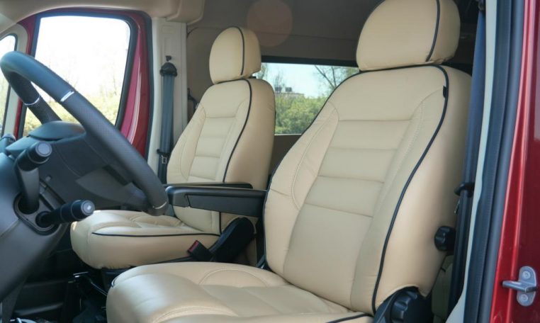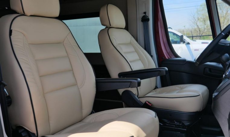 Front Seating: Premium Leather Captain Chairs with Heat & Self-Leveling Armrest