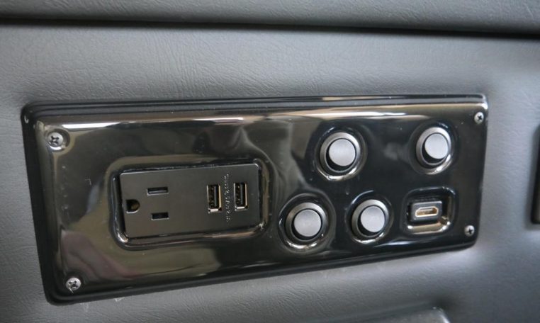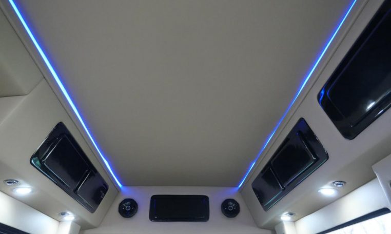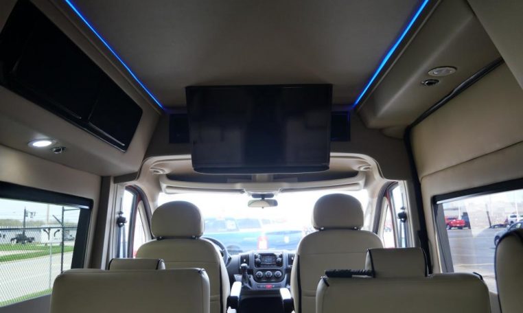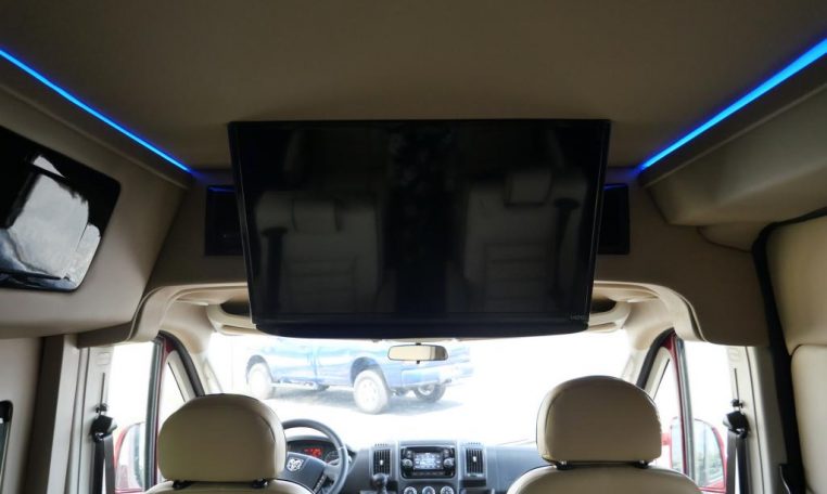 Rear Entertainment: 32″ Vizio HDTV, Panasonic Blu-ray/DVD Player, JVC Stereo, Wireless Headphones w/ Storage Cases, AC Power Outlet, Remote HDMI Input, LED Indirect Accent and Mood Lighting, LED Reading Lights