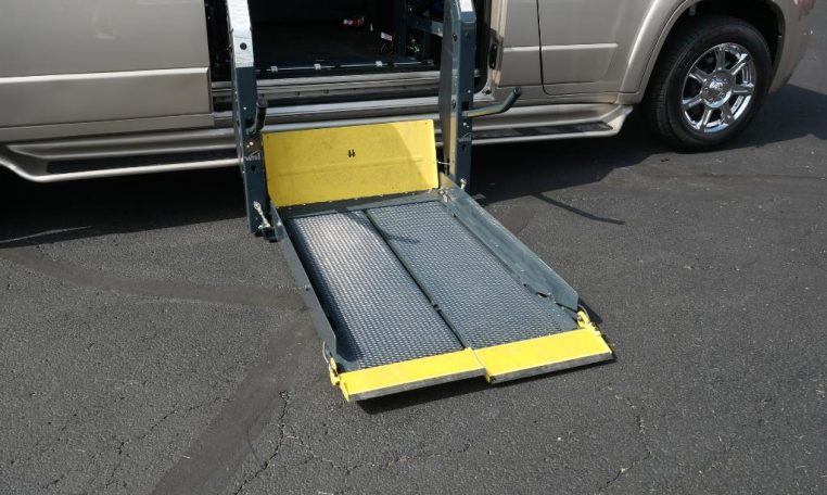 — Ricon Clearway Power Wheelchair Lift – Split Non-Skid Platform Base – Handheld Lift Controls – Heavy-Duty Black Rubber Flooring – Retractable Tie-Down Straps – AND MORE!