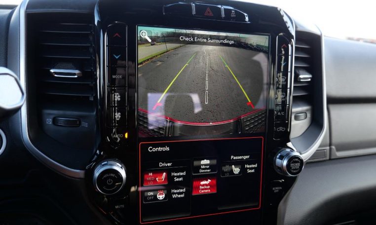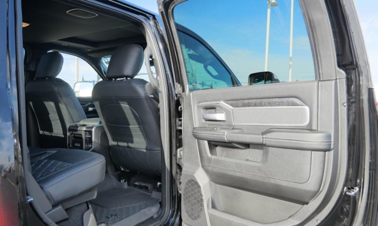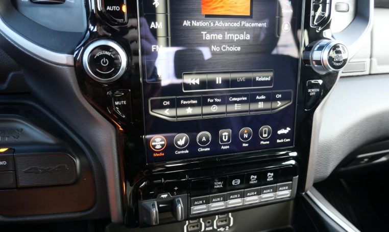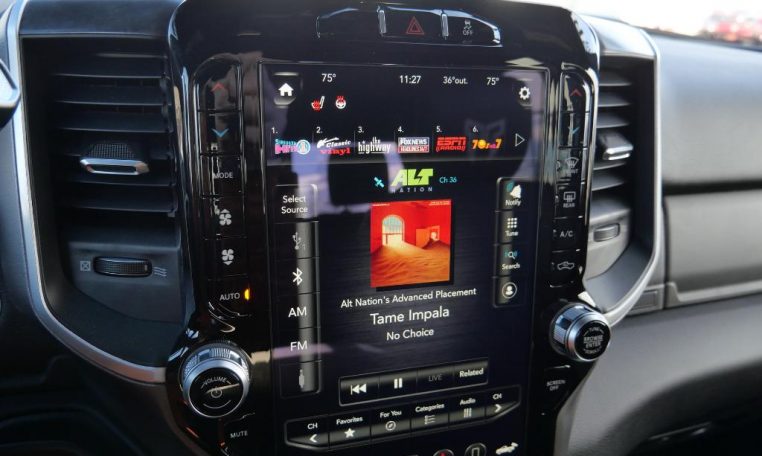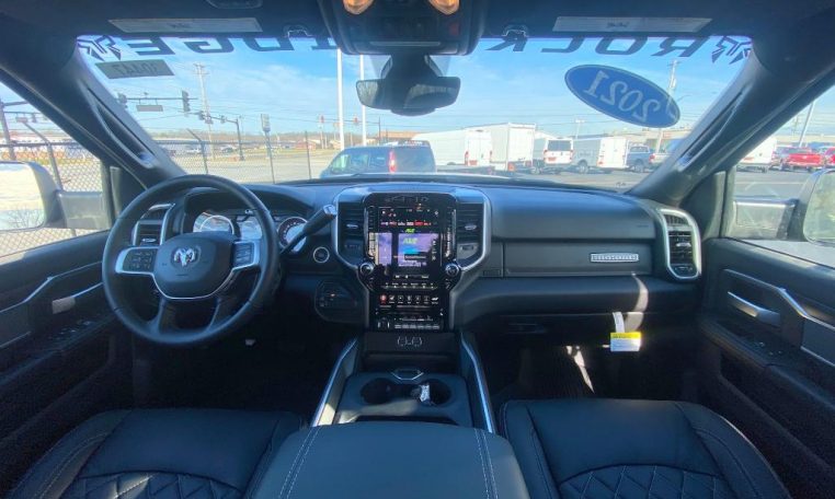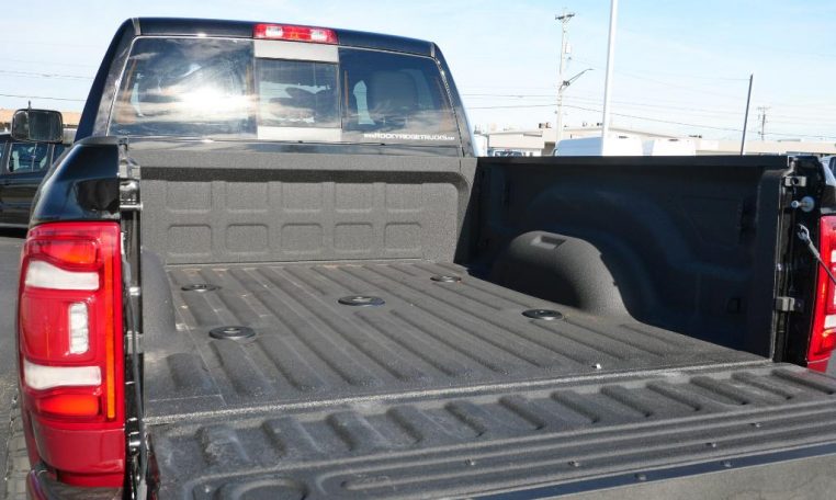 - LEVEL B EQUIPMENT GROUP: Radio: Uconnect 4 w/8.4" Display; Google Android Auto; SiriusXM Satellite Radio; Integrated Center Stack Radio; 8.4" Touchscreen Display; Apple CarPlay; SiriusXM Radio Service; Rear Window Defroster; Rear View Auto Dim Mirror; LED Tail Lamps; Power Adjustable Pedals; For More Info; Call 800-643-2112; Leather Wrapped Steering Wheel; Rear Power Sliding Window; Rear Dome w/On/Off Switch Lamp; Front Fog Lamps; Lone Star IP Badge; Glove Box Lamp; Footwell Courtesy Lamp; 115V Auxiliary Rear Power Outlet; Media Hub w/2 Charge Only USBs; Heated Front Seats; Heated Steering Wheel; Foam Bottle Insert (Door Trim Panel); Wheels: 18" x 8.0" Polished Aluminum; Dampened Tailgate; Security Alarm; Locking Lower Glove Box; Remote Start System; Power Adjust/Fold & Heated Black Tow Mirrors; Steering Wheel Mounted Audio Controls; Dual Glove Boxes; Air Conditioning ATC w/Dual Zone Control; Universal Garage Door Opener; 115V Auxiliary Front Power Outlet; Exterior 115V AC Outlet;
