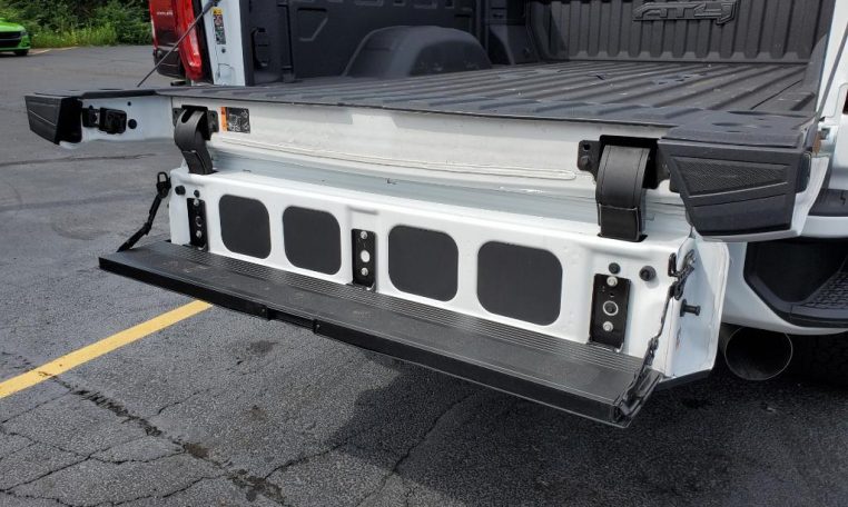 - Tailgate; GMC MultiPro Tailgate with six functional load/access features NOTE: Auto release can be disabled if ball hitch is installed. See Owner''s manual for details