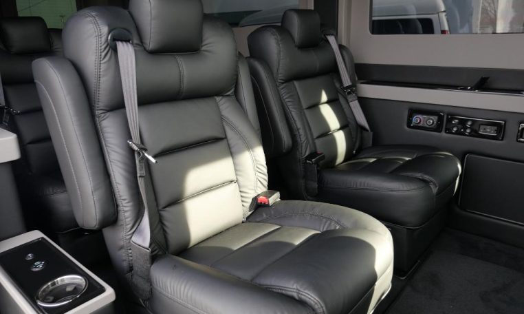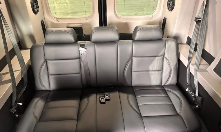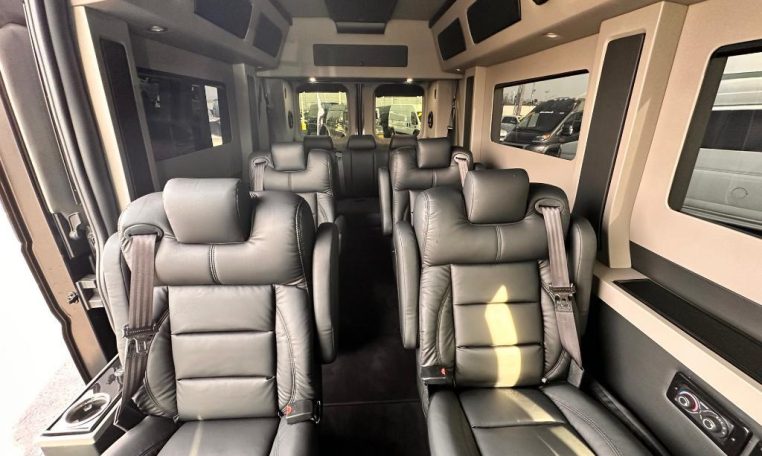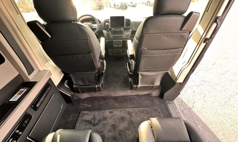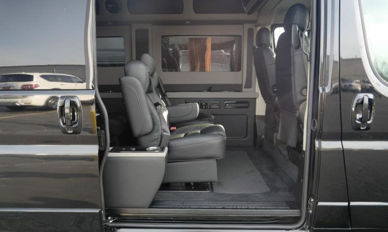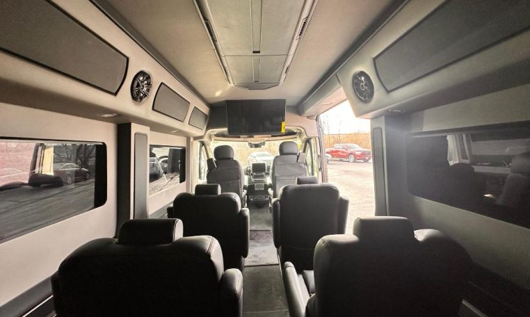 — Sherry Vans 9 Passenger Conversion! Stand Up Inside – 76-Inch Interior Height! Premium Leather Seating – Swivel 2nd/3rd Row Captain Chairs w/ Power Recline – LATCH Child Seat Anchors in Captain Chairs – 2-Section Power Sofa/Bed – 32-Inch Smart HDTV – Smart Blu-Ray/DVD Player – Premium Speakers Throughout – Wireless Headphones – Rear 110V AC Power Outlet – Rear USB Charge Ports – Remote HDMI Input For TV – Automatic Rear Climate Control w/ Adjustable Vents – Premium Deep Pile Carpeting w/ Floor Mats – Sound/Heat Insulation – Rear Privacy Window Shades – Indirect RGB LED Accent Lighting – LED Reading Lights – Stainless Steel Cupholders – Painted Exterior Fascias/Trim – Painted Running Boards w/ Non-Slip Pads – 16-Inch Premium Alloy Wheels – AND MORE!
