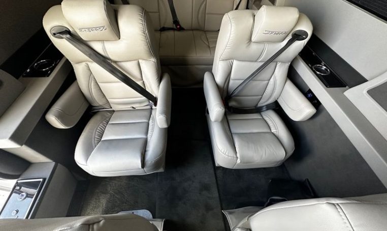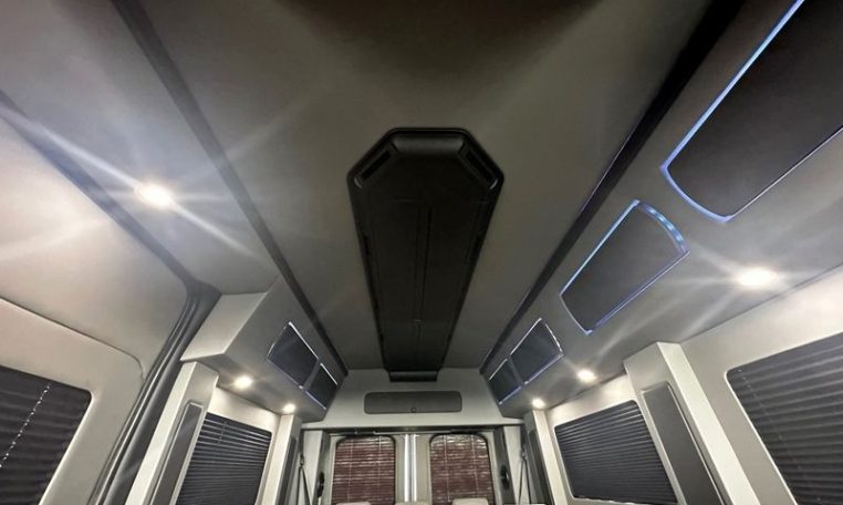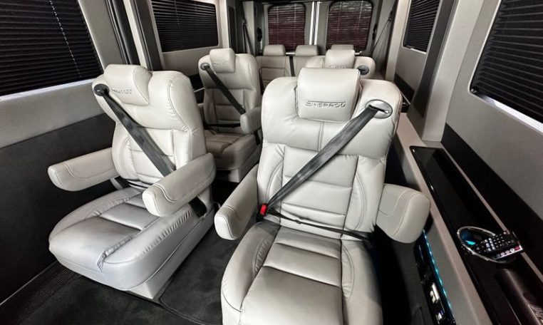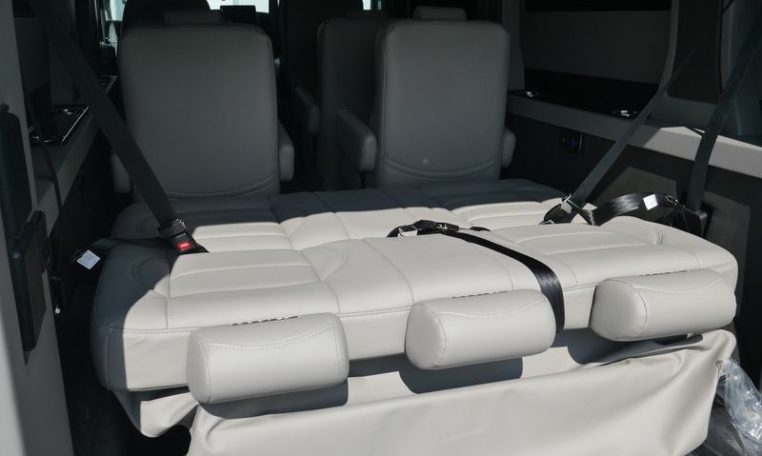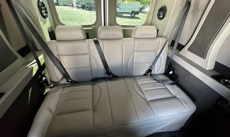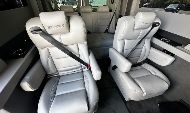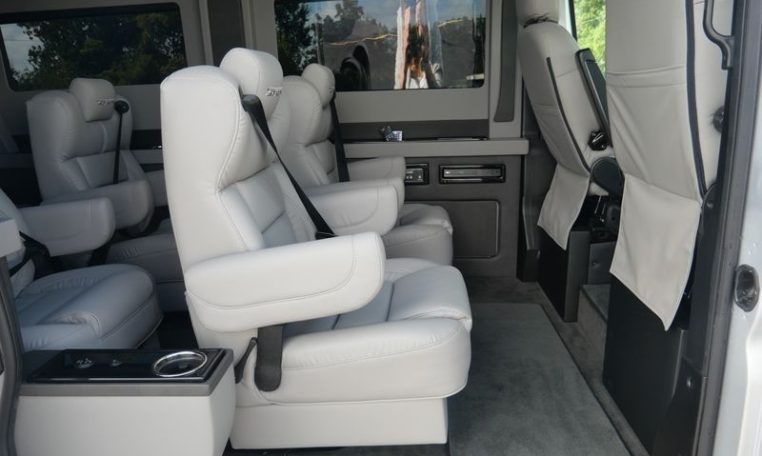 — Sherrod Vans 9 Passenger Conversion! Stand Up Inside – 76-Inch Interior Height! Premium Leather Seating – Swivel 2nd/3rd Row Captain Chairs w/ Power Recline – LATCH Child Seat Anchors in Captain Chairs – 2-Section Power Sofa/Bed – 32-Inch Smart HDTV – Smart Blu-Ray/DVD Player – Premium Speakers Throughout – Wireless Headphones – Rear 110V AC Power Outlet – Rear USB Charge Ports – Remote HDMI Input For TV – Automatic Rear Climate Control w/ Adjustable Vents – Premium Deep Pile Carpeting w/ Floor Mats – Sound/Heat Insulation – Rear Privacy Window Shades – Indirect LED Accent Lighting – LED Reading Lights – Stainless Steel Cupholders – Painted Exterior Fascias/Trim – Painted Running Boards w/ Non-Slip Pads – Premium Alloy Wheels – AND MORE!