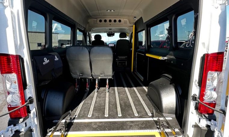 — BRAND NEW Vantage Mobility VMI Rear-Entry Mobility Package! Heavy Duty Heat/AC System! 42-Inch Wide ADA-Compliant Ramp – Power-Kneeling Rear Air Suspension – Q’Straint Retractable 4-Point Tie-Down Straps – L-Track Tie-Down Rails – Six Vinyl Quick-Release Seats – Commercial Handrail Kit – Stainless Steel Mesh Running Boards – 3 Year/36,000 Upfit Warranty – AND MORE!