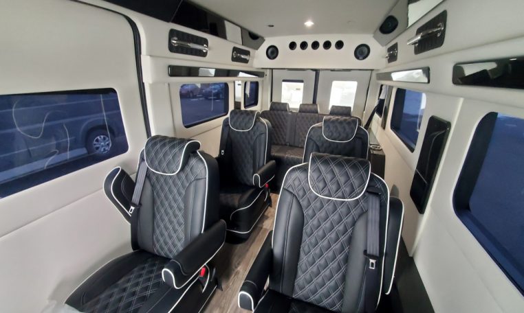 — BRAND NEW 2025 Midwest Automotive Designs 9 Passenger Luxury Conversion! Stand Up Inside–76-Inch Interior Height! Premium Diamond-Stitched Leather Seating – Quick-Release/Swivel 2nd/3rd Row Captain Chairs w/ Memory Foam – 2-Section Power Sofa/Bed – 32-Inch Smart HDTV – Remote HDMI TV Input – TV Antenna – Firefly Control System w/ 4 Touchscreen Displays – Rear Touchscreen Alpine Radio – Premium Alpine Speakers Throughout w/ Subwoofer – 1000 Watt Power Inverter – Deka Deep-Cycle Lithium Battery – Shore Power Input – 3 110V AC Power Outlets w/ USB Charge Ports – Premier Products Dual-Compressor Rear Climate Control System – Woodgrain Composite Flooring w/ Floor Mats – High-Gloss Genuine Wood Trim – Sound/Heat Insulation – Rear Privacy Window Shades – Indirect LED Accent Lighting – LED-Lit Assist Handles – LED Reading Lights – Stainless Steel Cupholders – Painted Exterior Fascias/Trim – Painted Running Boards w/ Non-Slip Pads – AND MORE!
