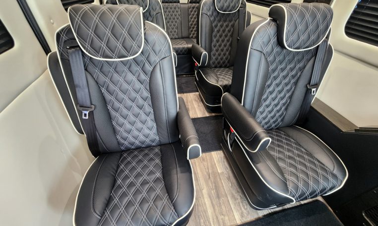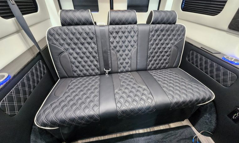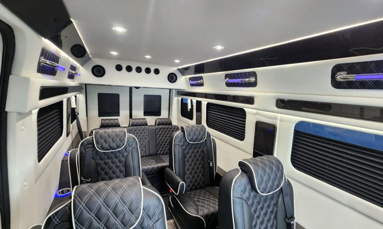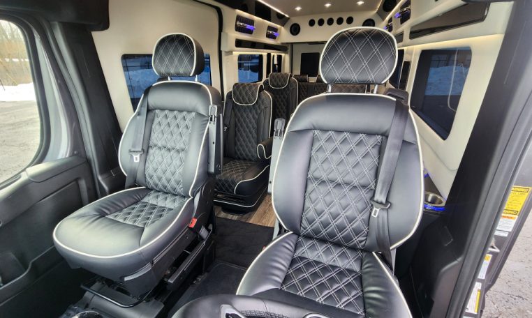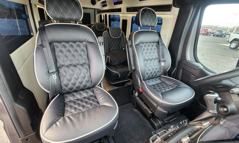 — BRAND NEW 2025 Midwest Automotive Designs 9 Passenger Luxury Conversion! Stand Up Inside–76-Inch Interior Height! Premium Diamond-Stitched Leather Seating – Quick-Release/Swivel 2nd/3rd Row Captain Chairs w/ Memory Foam – 2-Section Power Sofa/Bed – 32-Inch Smart HDTV – Remote HDMI TV Input – TV Antenna – Firefly Control System w/ 4 Touchscreen Displays – Rear Touchscreen Alpine Radio – Premium Alpine Speakers Throughout w/ Subwoofer – 1000 Watt Power Inverter – 100A Deep-Cycle Lithium Battery – Shore Power Input – 3 110V AC Power Outlets w/ USB Charge Ports – Premier Products Dual-Compressor Rear Climate Control System – Woodgrain Composite Flooring w/ Floor Mats – High-Gloss Genuine Wood Trim – Sound/Heat Insulation – Rear Privacy Window Shades – Indirect LED Accent Lighting – LED-Lit Assist Handles – LED Reading Lights – Stainless Steel Cupholders – Painted Exterior Fascias/Trim – Painted Running Boards w/ Non-Slip Pads – AND MORE!