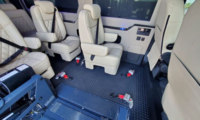 — Ricon Slide-Away Power Wheelchair Lift – Hand-Held Remote Control – Quick-Release Multi-Point Wheelchair Tie Downs – Heavy Duty Rubber Flooring – AND MORE!