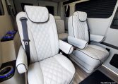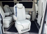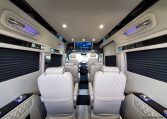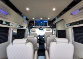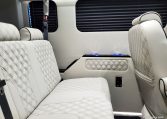 — Midwest Automotive Designs 9 Passenger Luxury Conversion! Stand Up Inside–76-Inch Interior Height! Premium Diamond-Stitched Leather Seating – Quick-Release/Swivel 2nd/3rd Row Captain Chairs w/ Memory Foam – 2-Section Power Sofa/Bed – Smart HDTV – Remote HDMI TV Input – TV Antenna – Firefly Control System w/ 3 Touchscreen Displays – Rear Touchscreen Alpine Radio – Premium Alpine Speakers Throughout w/ Subwoofer – 1000 Watt Power Inverter – Deka Deep-Cycle Lithium Battery – Shore Power Input – 3 110V AC Power Outlets w/ USB Charge Ports – Premier Products Dual-Compressor Rear Climate Control System – Woodgrain Composite Flooring w/ Floor Mats – High-Gloss Genuine Wood Trim – Sound/Heat Insulation – Rear Privacy Window Shades – Indirect LED Accent Lighting – LED Reading Lights – Stainless Steel Cupholders – Painted Exterior Fascias/Trim – Painted Running Boards w/ Non-Slip Pads – AND MORE!
