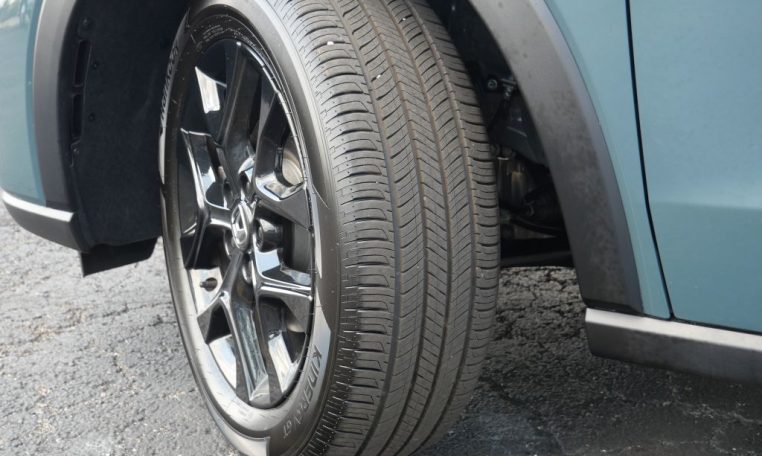 - 18 x 7.5-inch front and rear black aluminum wheels