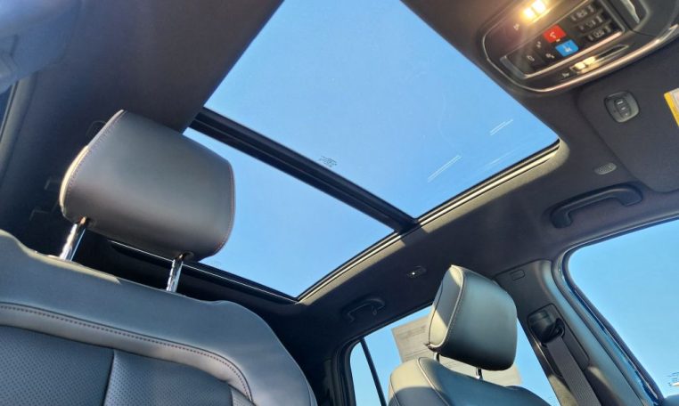 - First and second-row sliding and tilting glass sunroof with express open/close activation sunshade