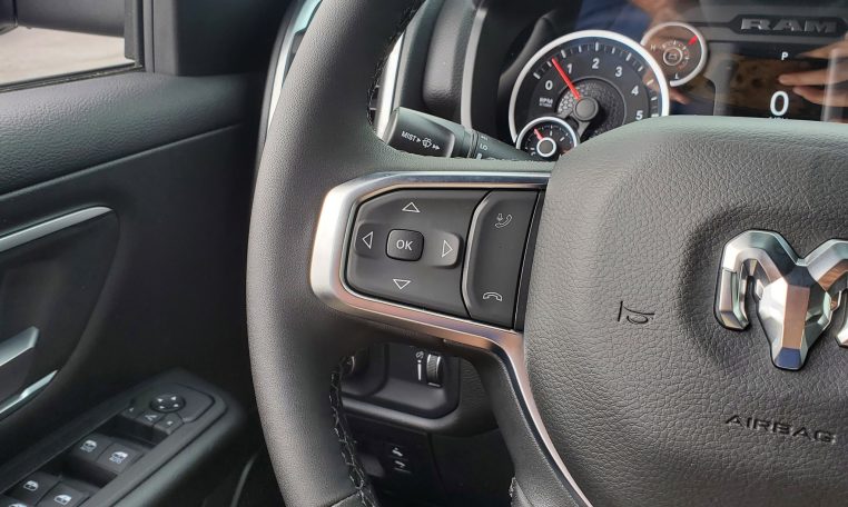 - Big Horn Level 1 Equipment Group: 400W Inverter; Rear Window Defroster; Rear View Auto Dim Mirror; Power Adjustable Pedals; Leather Wrapped Steering Wheel; Rear Power Sliding Window; Exterior Mirrors with Supplemental Signals; Steering Wheel Mounted Audio Controls; Exterior Mirrors Courtesy Lamps; Glove Box Lamp; Auto Power-Folding Mirrors; Exterior Mirrors with Heating Element; Auto Dim Exterior Driver Mirror; 115V Auxiliary Power Outlet; Universal Garage Door Opener; Heated Front Seats; Heated Steering Wheel; Black Exterior Mirrors; Power Adjust 8-Way Driver Seat; 2nd Row in Floor Storage Bins; Convex Wide-Angle Exterior Mirror Insert; Black Premium Power Mirrors; Sun Visors with Illuminated Vanity Mirrors; Power 2-Way Driver Lumbar Adjust