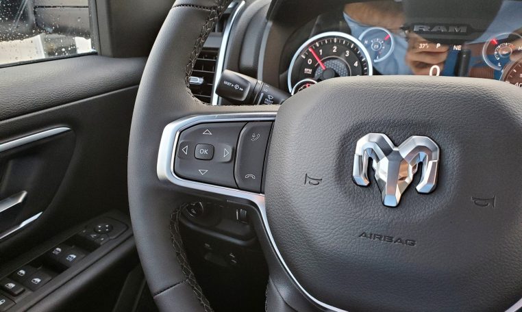 - Big Horn Level 1 Equipment Group: SiriusXM Radio Service; Rear Window Defroster; Rear View Auto Dim Mirror; Power Adjustable Pedals; Leather Wrapped Steering Wheel; Rear Power Sliding Window; Rear Dome with On/off Switch Lamp; Glove Box Lamp; Auto Power-Folding Mirrors; Exterior Mirrors with Heating Element; Auto Dim Exterior Driver Mirror; Heated Front Seats; Heated Steering Wheel; Black Exterior Mirrors; Black Premium Power Mirrors; SiriusXM Satellite Radio; 400W Inverter; Deluxe Cloth Bucket Seats; Exterior Mirrors with Supplemental Signals; Steering Wheel Mounted Audio Controls; Exterior Mirrors Courtesy Lamps; Body Color Fender Flares; 115V Auxiliary Power Outlet; Universal Garage Door Opener; 2nd Row in Floor Storage Bins; Convex Wide-Angle Exterior Mirror Insert; Sun Visors with Illuminated Vanity Mirrors