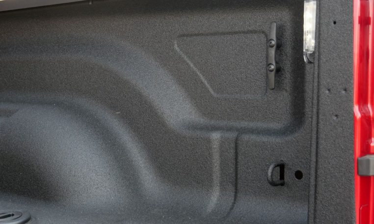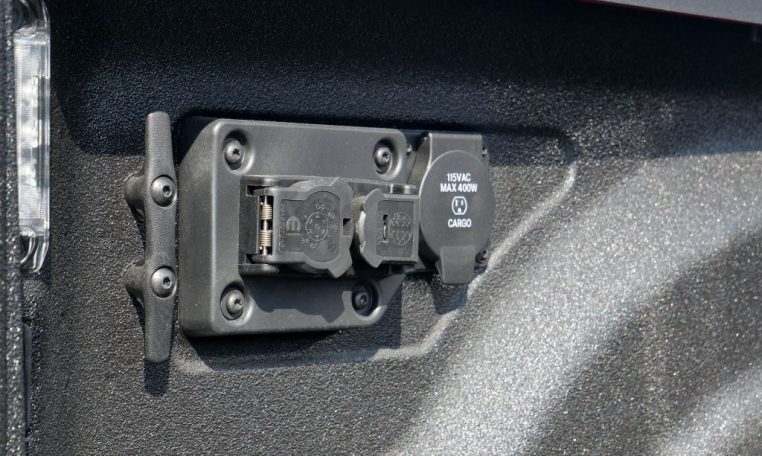 - Utility & Bed Features: Factory Spray-In Bed Liner • LED Bed Lighting • Bed-Mounted 115V AC Power Outlet • Deployable Bed Step • Rear Power-Sliding Window • Power / Heated Trailer Tow Mirrors