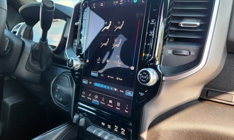 - Call 800-643-2112; Integrated Voice Command with Bluetooth; Emergency Vehicle Alert System (EVAS); 12" Touchscreen Display; Glove Box Lamp; Auto Power-Folding Mirrors; Footwell Courtesy Lamp; 115V Auxiliary Rear Power Outlet; Media Hub with 2 Charge Only USBs; Anti-Spin Differential Rear Axle; Drowsy Driver Detection; Heated Front Seats; Mirror Running Lights; MOPAR Deployable Bed Step; Exterior 115V AC Outlet; Alexa Built-In; Apple CarPlay; Premium Cloth Bucket Seats; Power-Adjustable Convex Aux Mirrors; Active Lane Management System; Forward and Reverse Utility Lights; Locking Lower Glove Box; Remote Start System; 9 Alpine Speakers with Subwoofer; Disassociated Touchscreen Display; Dual Wireless Charging Pad; Trailer Tire Pressure Monitoring System; Dual Glove Boxes; 115-Volt Auxiliary Front Power Outlet; Universal Garage Door Opener; 2nd Row in Floor Storage Bins; Sun Visors with Illuminated Vanity Mirrors; Center Stop Lamp with Cargo View Camera; Rain Sensitive Windshield Wipers; Rear View Auto Dim Mirror; Rear Power Sliding Window; Rear Dome with On/off Switch Lamp; LED Bed Lighting; Connectivity - US/Canada; Traffic Sign Recognition; GPS Navigation; 4G LTE Wi-Fi Hot Spot; Adaptive Steering System; GPS Antenna Input; Exterior Mirrors with Heating Element; SiriusXM with 360L; Global Telematics Box Module; Connected Travel and Traffic Services; Heated Steering Wheel; Foam Bottle Insert (door Trim Panel); Black Exterior Mirrors; Dampened Tailgate; Trailer Reverse Guidance; Big Horn Instrument Panel Badge; Off-Road Info Pages; Selectable Tire Fill Alert; Trailer Tow Pages; 400W Inverter; HD Radio; Uconnect 5 Navigation with 12.0" Display Radio; Power Heated Folding Telescopic Mirrors; Exterior Mirrors with Supplemental Signals; Steering Wheel Mounted Audio Controls; Exterior Mirrors Courtesy Lamps; Air Conditioning ATC with Dual Zone Control; MOPAR Spray in Bedliner; Auto High Beam Headlamp Control; Cluster 7.0" TFT Color Display; Power Adjust Mirrors; Luxury Steering Wheel; Power Telescoping Mirrors