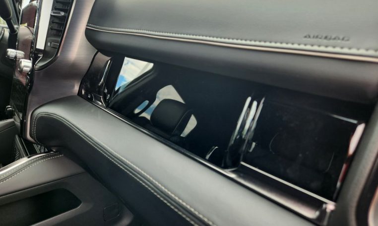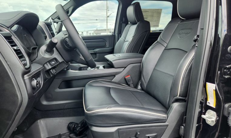 - Call 800-643-2112; Front Passenger Interactive Display; Integrated Voice Command with Bluetooth; Emergency Vehicle Alert System (EVAS); Power Deployable Running Boards; Auto Power-Folding Mirrors; Mirror Running Lights; MOPAR Deployable Bed Step; Alexa Built-In; Apple CarPlay; Power-Adjustable Convex Aux Mirrors; Premium Overhead Console; Forward and Reverse Utility Lights; Disassociated Touchscreen Display; Leather Wrapped Shift Control; 17 Speaker Harman/kardon Premium Sound; LED Interior Lighting; LED Dome Lamp with On/off Switch; Universal Garage Door Opener; Sun Visors with Illuminated Vanity Mirrors; Leather Trimmed Bucket Seats (NL); Center Stop Lamp with Cargo View Camera; Rain Sensitive Windshield Wipers; LED Bed Lighting; Connectivity - US/Canada; Body Color Door Handles; GPS Navigation; 4G LTE Wi-Fi Hot Spot; GPS Antenna Input; Overhead LED Lamps; Exterior Mirrors with Heating Element; Auto Dim Exterior Mirror; SiriusXM with 360L; Global Telematics Box Module; Leather Wrapped Grab Handle; Connected Travel and Traffic Services; Black Exterior Mirrors; Off-Road Info Pages; Selectable Tire Fill Alert; Trailer Tow Pages; HD Radio; 14.4" Touchscreen Display; Power Heated Fold Telescopic Mirrors with Memory; Exterior Mirrors with Supplemental Signals; Sport Performance Hood; Exterior Mirrors Courtesy Lamps; Uconnect 5 Nav with 14.4" Display; MOPAR Spray in Bedliner; Front Door Locks 2-Door Passive Entry; Auto High Beam Headlamp Control; Exterior Mirrors with Memory; Luxury Door Trim Panel; Aluminum Litho Instrument Panel Bezels with Black Trim; Power Adjust Mirrors; Power Telescoping Mirrors; MOPAR Front and Rear Rubber Floor Mats; Auto Dim Exterior Passenger Mirror; Auto Adjust in Reverse Exterior Mirrors
