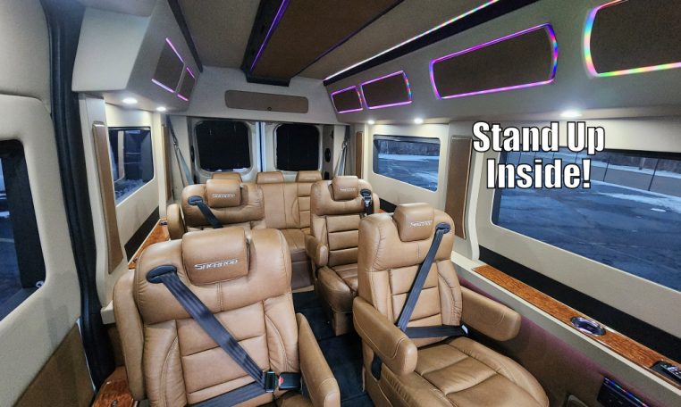 - Configuration: 9 Passenger LUXURY VAN • Stand Up Inside — High-Top Roof