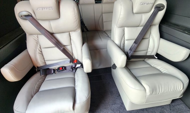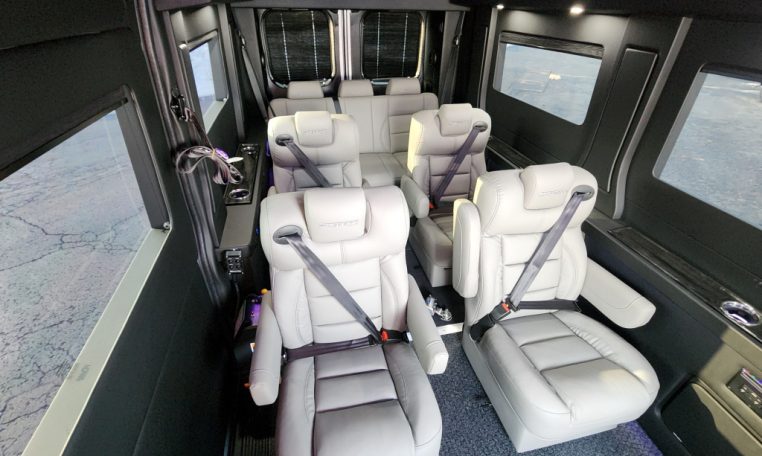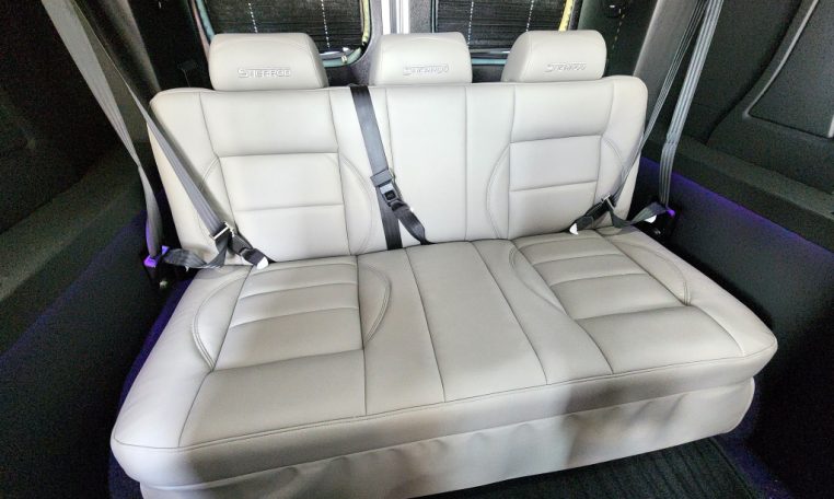 — Sherrod Vans 9 Passenger Conversion! Stand Up Inside – 76-Inch Interior Height! Premium Leather Seating – Swivel/Quick-Release 2nd/3rd Row Captain Chairs – 2-Section Power Sofa/Bed – 32-Inch Smart HDTV – Premium Speakers Throughout – Wireless Headphones – Rear 110V AC Power Outlet – Rear USB Charge Ports – Remote HDMI Input For TV – Automatic Rear Climate Control w/ Adjustable Vents – Premium Vinyl Flooring – Sound/Heat Insulation – Rear Privacy Window Shades – Indirect RGB LED Accent Lighting – LED Reading Lights – Stainless Steel Cupholders – Painted Exterior Fascias/Trim – Painted Running Boards w/ Non-Slip Pads – AND MORE!