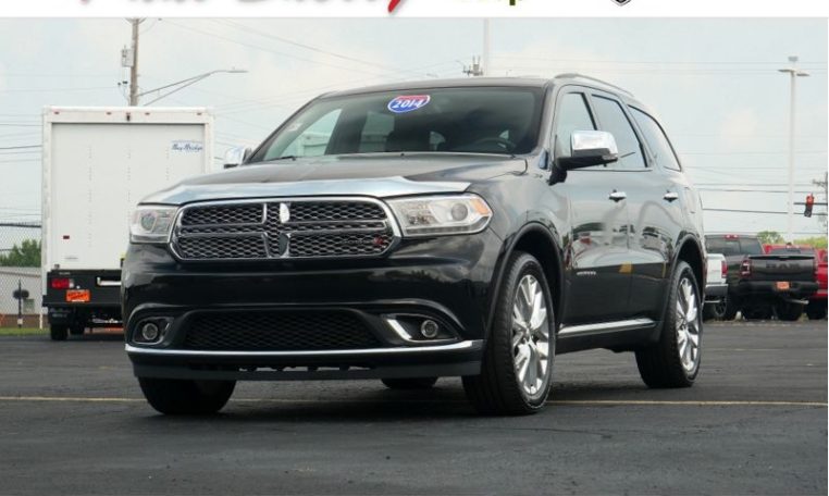 VERY CLEAN! All Wheel Drive! Third Row Seating! GPS Navigation! Sunroof – Remote Start – Power/Heated/Cooled Leather Seats – Heated 2nd Row Perimeter Seats – Heated Leather-Wrapped Steering Wheel w/ Paddle Shifters – Power-Adjustable Steering Column – Push-Button Ignition – Power Liftgate – Power/Heated Mirrors – Hood-Mounted Bug Deflector – Rain-Sensing Wipers – Rear Parking Camera/Sensors – 8.4-Inch Touchscreen Radio Display – Premium Alpine Stereo System w/ Subwoofer – Auxiliary Stereo Input – Satellite Radio – Bluetooth For Phone – Automatic 3-Zone Climate Control – 115V AC Power Outlet – USB Charge Ports – Universal Garage Door Opener – 20-Inch Polished Alloy Wheels – Class IV Towing Receiver – Rear Load-Leveling Suspension – Automatic HID Headlamps w/ Chrome Bezels – Automatic High-Beam Headlamp Control – Projector Fog Lamps – Roof Rack Rails – Clean AutoCheck History Report – AND MORE! Visit WWW.SHERRYCHRYSLER.COM to see more pictures and a detailed HD video of this Brilliant Black Crystal Pearlcoat 2014 Dodge Durango Citadel AWD SUV for sale in Piqua, Ohio. Do you know that we offer competitive financing options and can assist with delivery? These are only some of the ways Paul Sherry goes above and beyond! *See Dealer To Confirm Specific Equipment*