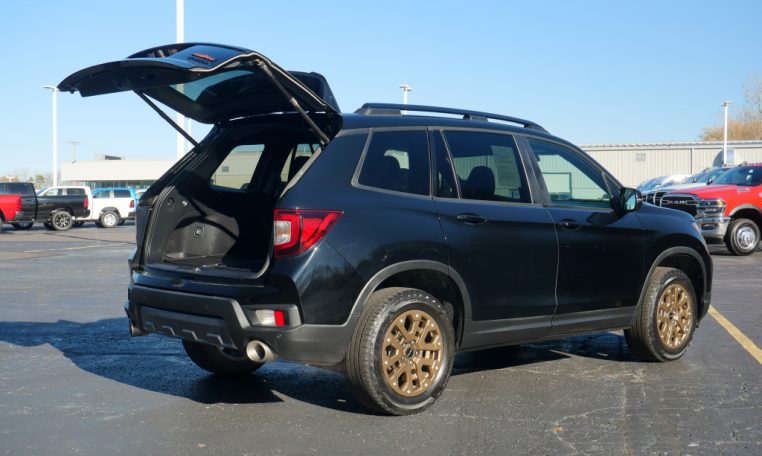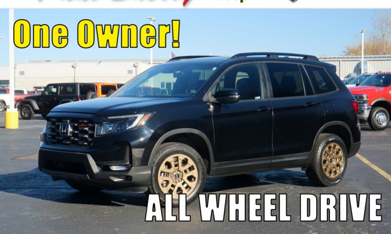 All Wheel Drive! 1 Owner! Sunroof – Remote Start – Navigation – Heated Leather Seats – Push-Button Ignition – Power Liftgate – Adaptive Cruise Control – Lane Keep Assist – Forward Collision Warning – Front/Rear Parking Sensors – Rear Parking Camera – Touchscreen Radio Display – Android Auto – Apple CarPlay – Bluetooth For Phone – Automatic Dual-Zone Climate Control – Wireless Charging Pad – USB Charge Ports – Leather-Wrapped Steering Wheel – Alloy Wheels – Automatic Headlamps – Automatic High-Beam Headlamp Control – LED Fog Lamps – Clean AutoCheck History Report – AND MORE! Visit WWW.SHERRYCHRYSLER.COM to see more pictures and a detailed HD video of this Crystal Black Pearl 2023 Honda Passport Trailsport AWD SUV for sale in Piqua, Ohio. Do you know that we offer competitive financing options and can assist with delivery? These are only some of the ways Paul Sherry goes above and beyond! *See Dealer To Confirm Specific Equipment*