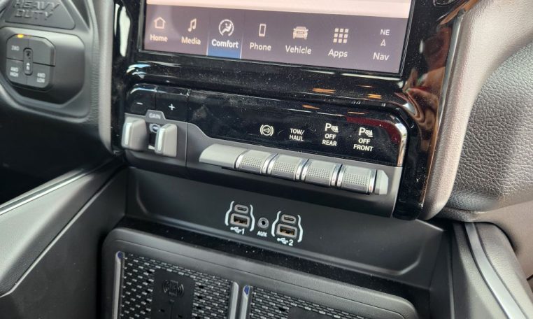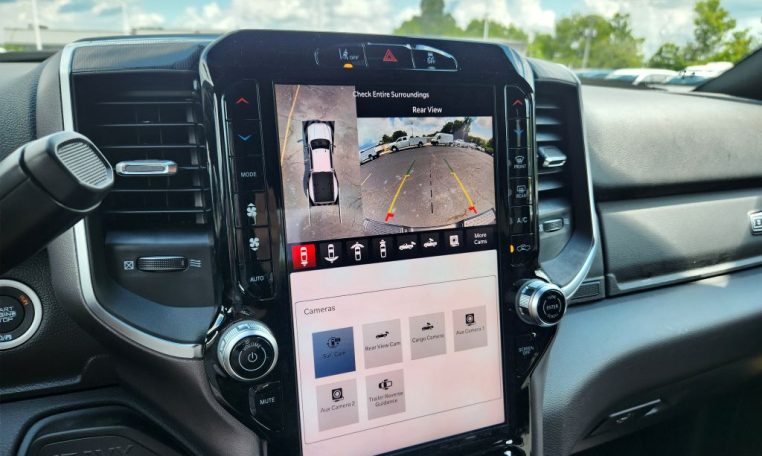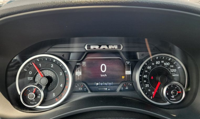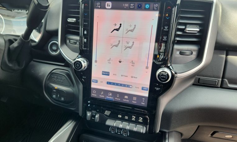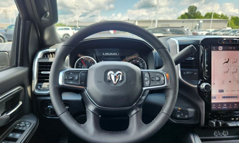 - Call 800-643-2112; Integrated Voice Command with Bluetooth; Emergency Vehicle Alert System (EVAS); Glove Box Lamp; 12" Touchscreen Display; Auto Power-Folding Mirrors; Footwell Courtesy Lamp; Heated Front Seats; Mirror Running Lights; Drowsy Driver Detection; MOPAR Deployable Bed Step; Exterior 115V AC Outlet; Alexa Built-In; Premium Cloth Bucket Seats; Apple CarPlay; Power-Adjustable Convex Aux Mirrors; Active Lane Management System; Forward and Reverse Utility Lights; Locking Lower Glove Box; Remote Start System; 9 Alpine Speakers with Subwoofer; Disassociated Touchscreen Display; Dual Wireless Charging Pad; Trailer Tire Pressure Monitoring System; Dual Glove Boxes; 115-Volt Auxiliary Front Power Outlet; Universal Garage Door Opener; 2nd Row in Floor Storage Bins; Sun Visors with Illuminated Vanity Mirrors; Center Stop Lamp with Cargo View Camera; Rain Sensitive Windshield Wipers; Rear View Auto Dim Mirror; Rear Power Sliding Window; Rear Dome with On/off Switch Lamp; LED Bed Lighting; Connectivity - US/Canada; Traffic Sign Recognition; GPS Navigation; 4G LTE Wi-Fi Hot Spot; Adaptive Steering System; GPS Antenna Input; Exterior Mirrors with Heating Element; SiriusXM with 360L; Global Telematics Box Module; Connected Travel and Traffic Services; Heated Steering Wheel; Foam Bottle Insert (door Trim Panel); Black Exterior Mirrors; Dampened Tailgate; Trailer Reverse Guidance; Big Horn Instrument Panel Badge; Off-Road Information Pages; Selectable Tire Fill Alert; Trailer Tow Pages; 400W Inverter; HD Radio; Uconnect 5 Navigation with 12.0" Display Radio; Power Heated Fold Telescopic Mirrors; Exterior Mirrors with Supplemental Signals; Steering Wheel Mounted Audio Controls; Exterior Mirrors Courtesy Lamps; Air Conditioning ATC with Dual Zone Control; MOPAR Spray in Bedliner; Auto High Beam Headlamp Control; Cluster 7.0" TFT Color Display; Power Adjust Mirrors; Luxury Steering Wheel; Power Telescoping Mirrors