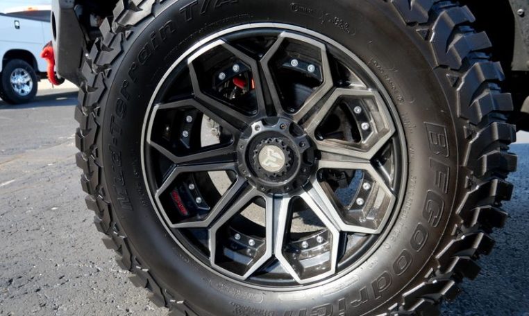 — 3-Inch Rocky Ridge Suspension System – Fox Adventure Series Shocks – 20-Inch Black Alloy Wheels – 37-Inch BFGoodrich All Terrain T/A KO2 Tires – Accent Painted Suspension Components – Power Running Boards – Steering Stabilizer – Aftermarket Dual Exhaust – Upgraded Vented Hood – Speedometer Calibration – Rocky Ridge Stubby Bumper w/ Painted Center Insert – 20-Inch LED Off-Road Light – Color-Matched D-Rings – Rocky Ridge Rear Bumper – Oversized Tire Carrier w/ Relocation Kit – Upgraded Spare Tire Mount – FMVSS Compliant – Retains Factory Warranty – AND MORE!