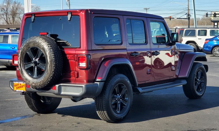 Sky One-Touch POWER TOP! 1 Owner! Snazzberry Pearl Paint! Altitude Appearance Package! 4X4 – Remote Start – GPS Navigation – Heated Leather Seats – Heated Leather-Wrapped Steering Wheel – Push-Button Ignition – Black Exterior Trim – Removeable Rear Quarter Windows – Gorilla Glass Windshield – Power/Heated Mirrors – Rear Parking Camera – 8.4-Inch Touchscreen Radio Display – Premium Alpine Stereo System – Android Auto – Apple CarPlay – Bluetooth For Phone – Satellite Radio – Automatic Climate Control – 115V AC Power Outlet – USB Charge Ports – Universal Garage Door Opener – 4G LTE Wi-Fi Hotspot – 18-Inch Painted Alloy Wheels – Automatic Headlamps – Fog Lamps – AND MORE! Visit WWW.SHERRYCHRYSLER.COM to see more pictures and a detailed HD video of this Snazzberry Pearlcoat 2022 Jeep Wrangler Unlimited Sahara Altitude 4WD Convertible SUV for sale in Piqua, Ohio. Do you know that we offer competitive financing options and can assist with delivery? These are only some of the ways Paul Sherry goes above and beyond! *See Dealer To Confirm Specific Equipment*